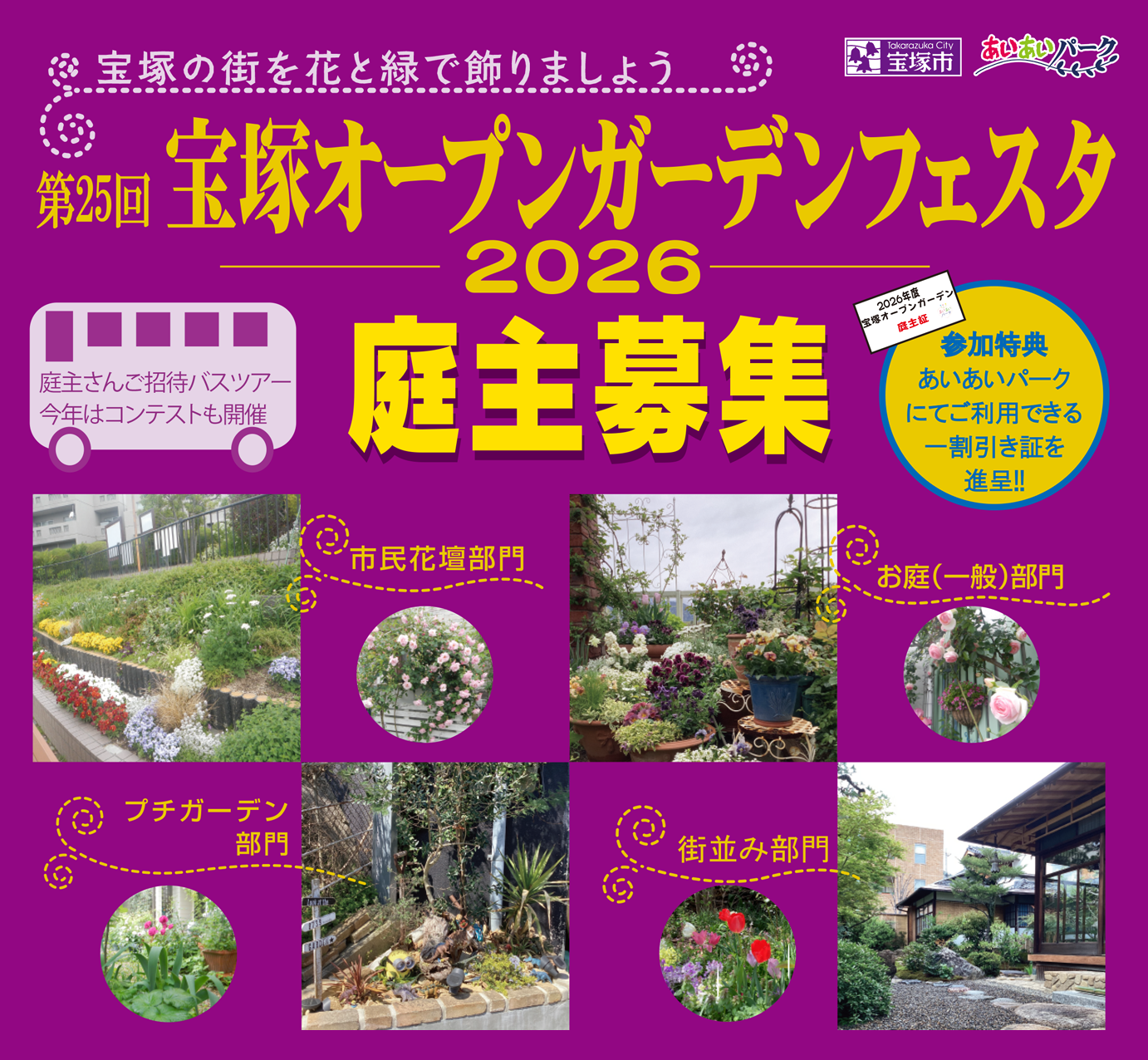 今年で25回目となるオープンガーデンフェスタは、市民や宝塚のまちを訪れる皆さんと楽しくガーデニング交流する絶好の機会となります。